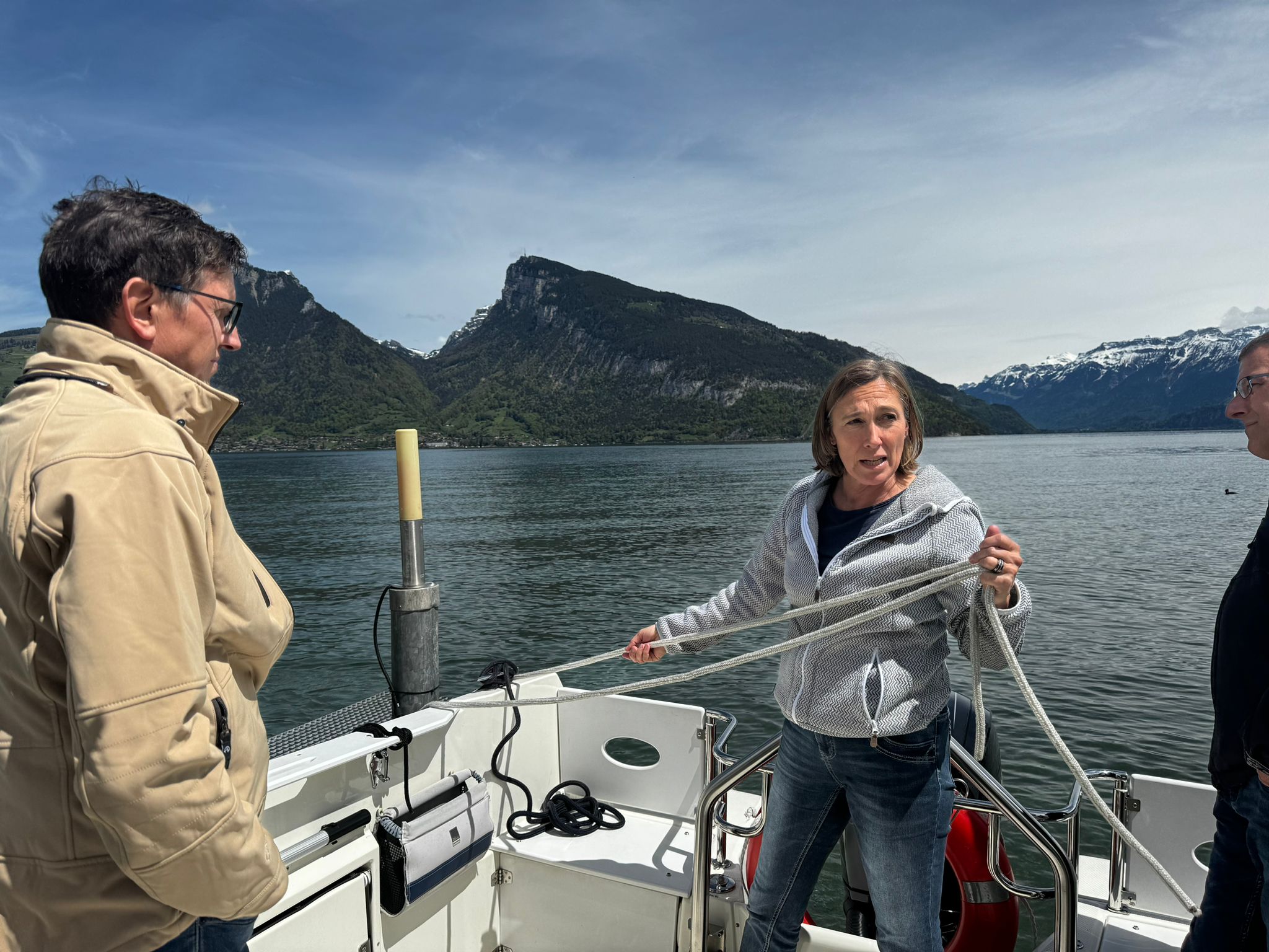 Nach einer kurzen Pause erfolgte der praktische Teil auf unserem bewährten Schulschiff Parker 660 Pilothouse welches sich dank grosszügigen Platzverhältnissen sehr gut für die Ausbildung und die praktische Prüfung mit mehreren Teilnehmern eignet.