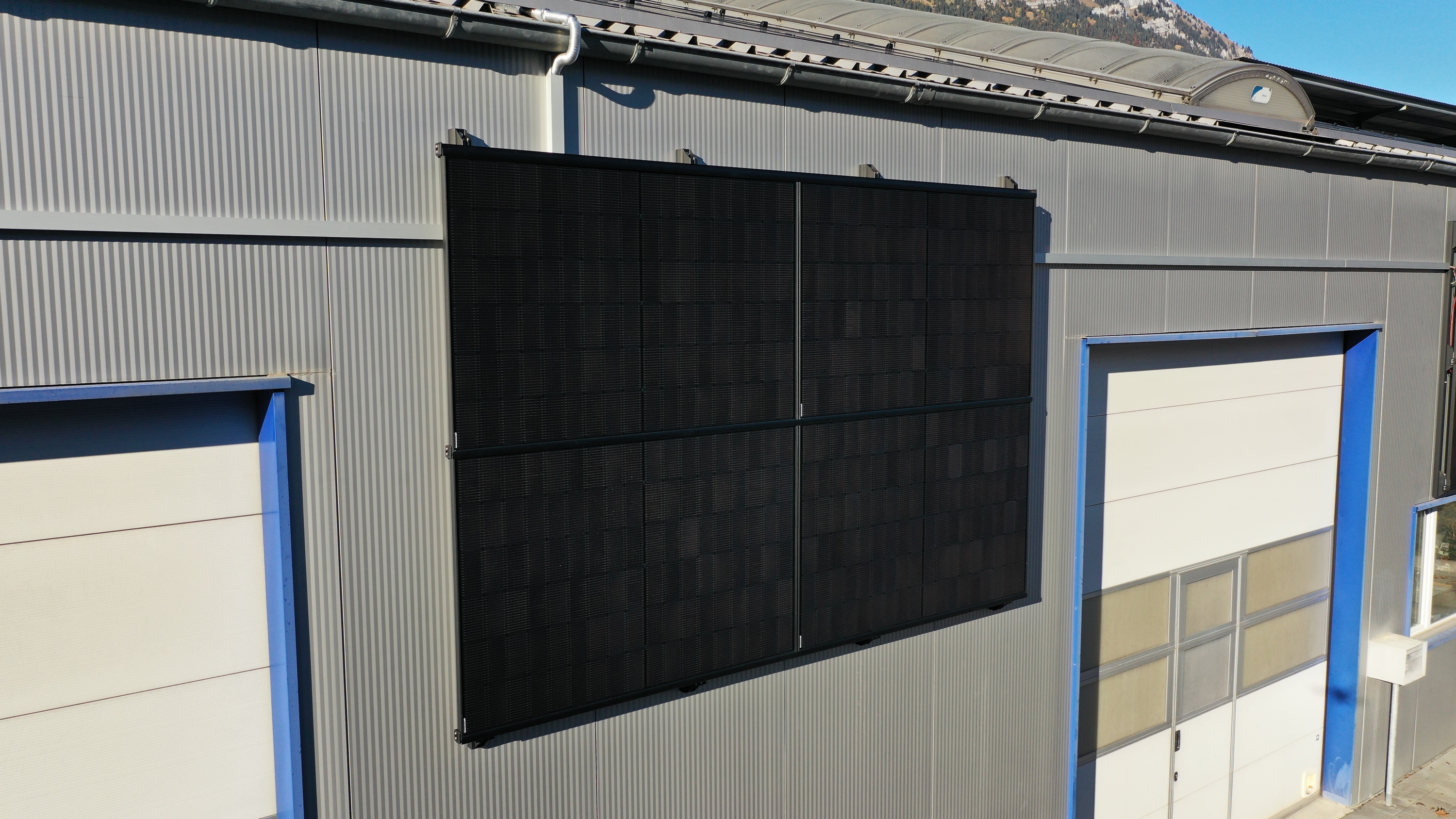 Damit die Solaranlage auch im Winter bei Schnee auf dem Dach Strom liefert, haben wir an der Fassade insgesamt 12 PV Module installiert.