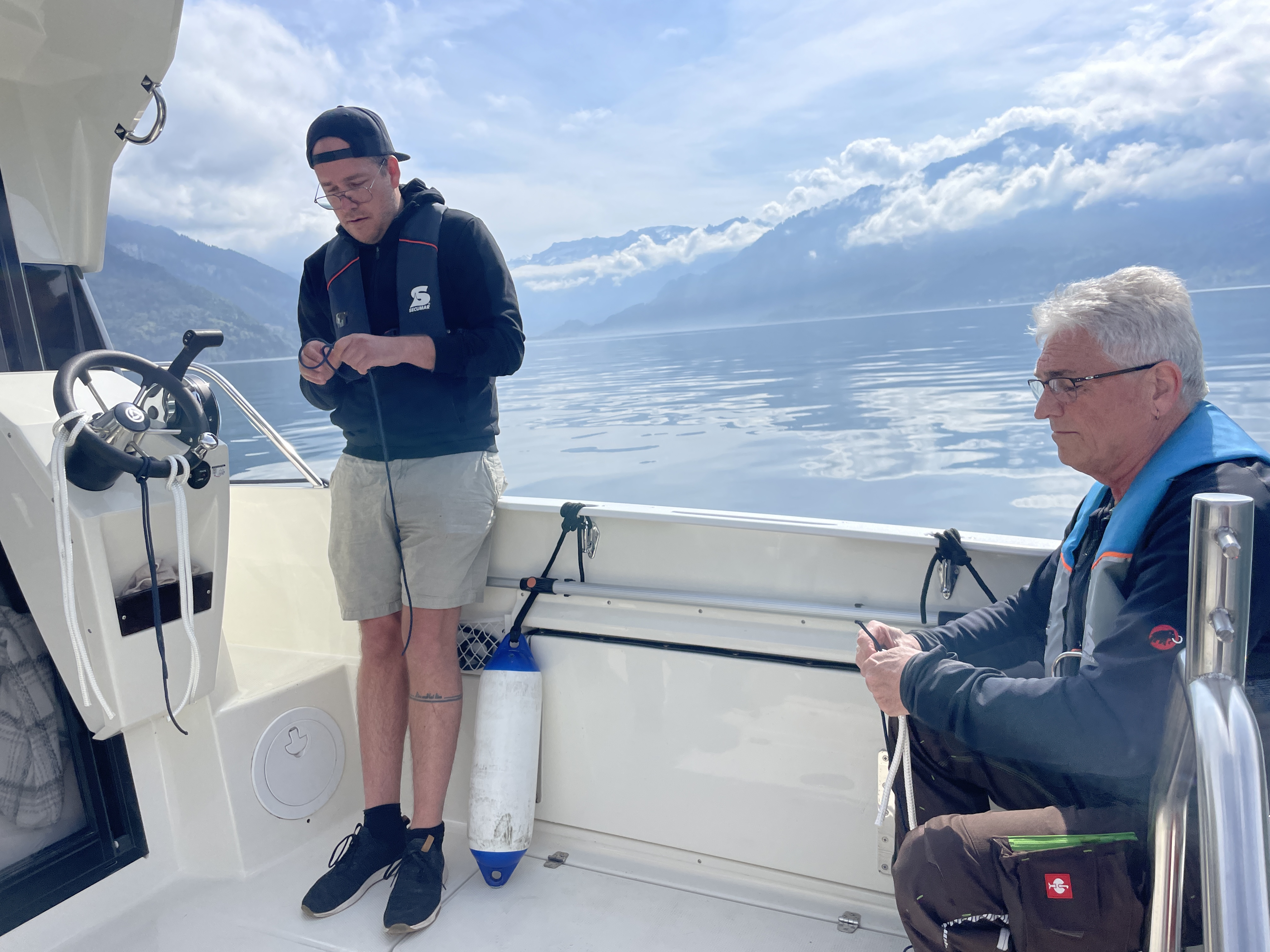 In Zusammenarbeit mit zwei Experten des DMYV Prüfungsausschuss Prüfungszentrum Bodensee | Stuttgart | Ausland durften wir die Prüfungen in unserem Heimathafen Bootshafen Güetital am Thunersee auf unserem bewährten Schulschiff Parker 660 Pilothouse durchführen.