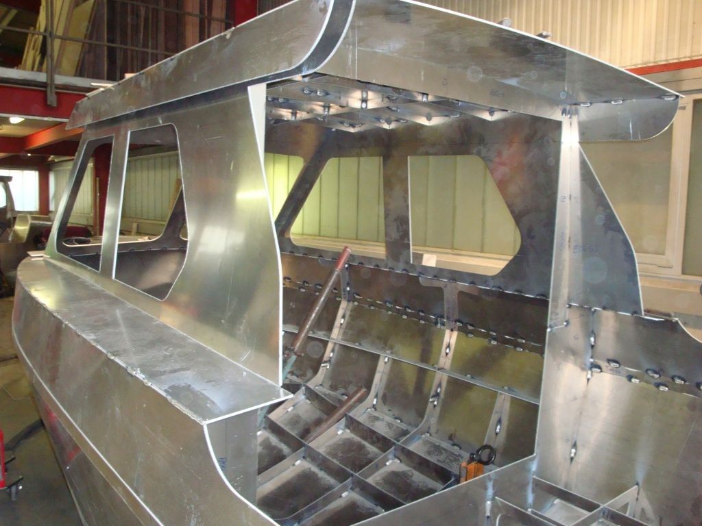 Das Schiff ist massiv aus seewasserbeständigen Aluminium (ALMG 4.5) gebaut und beeindruckt somit durch seine Unverwüstbarkeit und Langlebigkeit.